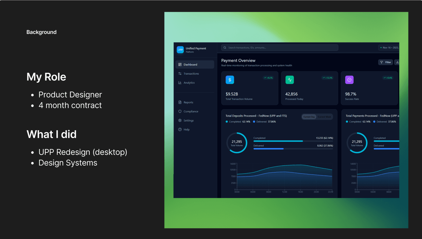 Led the redesign of the Unified Payment Platform (UPP), enabling users to efficiently track, manage, and edit payment processing data for over 9.5 billion dollars in transactions.