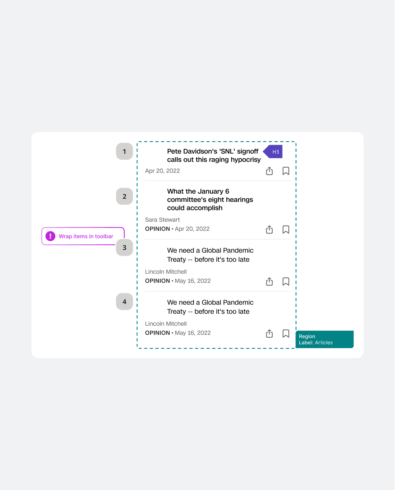 After documenting and proposing accessibility improvements, I created a prototype reflecting these changes. If implemented, the updated design system would enable screen reader users to clearly identify all interactive elements and navigate content seamlessly, demonstrating a significant step forward in inclusive design.